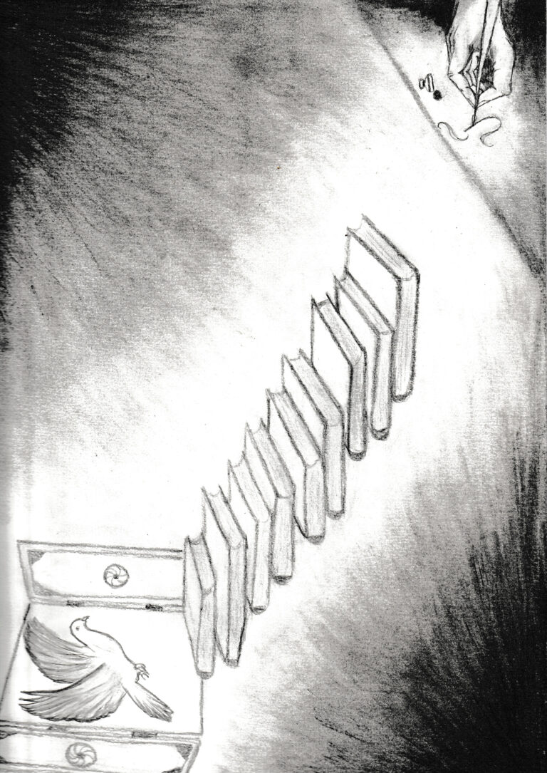 Անձնական զարգացումը կը խորհրդանշուի գիրքերով, որոնք կեանքին առջեւ կը բանան պատուհաններ։ Անոնց միջոցով կը ստանանք իմաստութիւն ու մխիթարութիւն, խորհրդանիշը՝ աղաւնին։ Յաւերժութեան նշանը անվերջ զարգացումն է, իսկ ստորագրող ձեռքը Շայիրին մելանը։