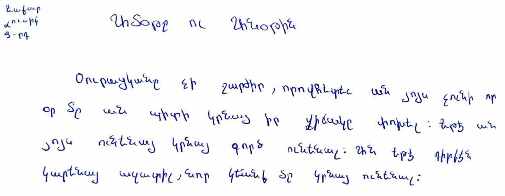 պիտի կտակէ «ամօթ»ն ու «անօթութիւն»ը գալիքին»։